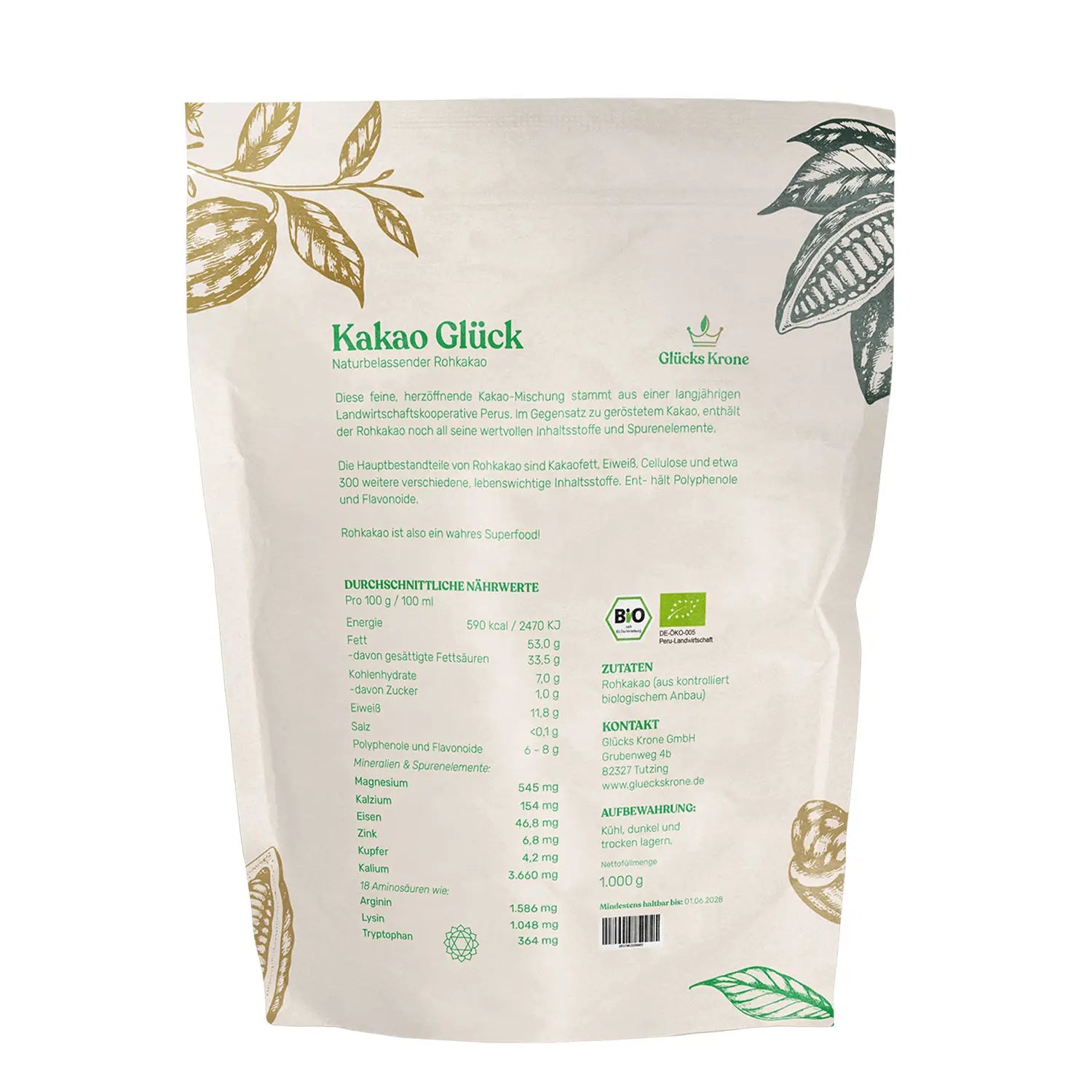 Bio Kakao Glück 1 kg (100% Bio Roh Kakao)