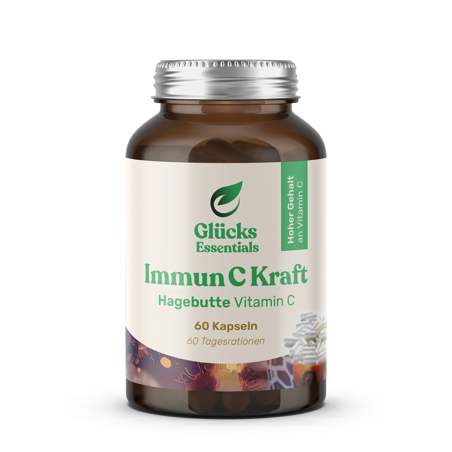 Unser Immun C Kraft versorgt dich mit hochdosiertem, natürlichem Vitamin C aus der Hagebutte – einer der besten natürlichen Quellen für dieses essentielle Vitamin.