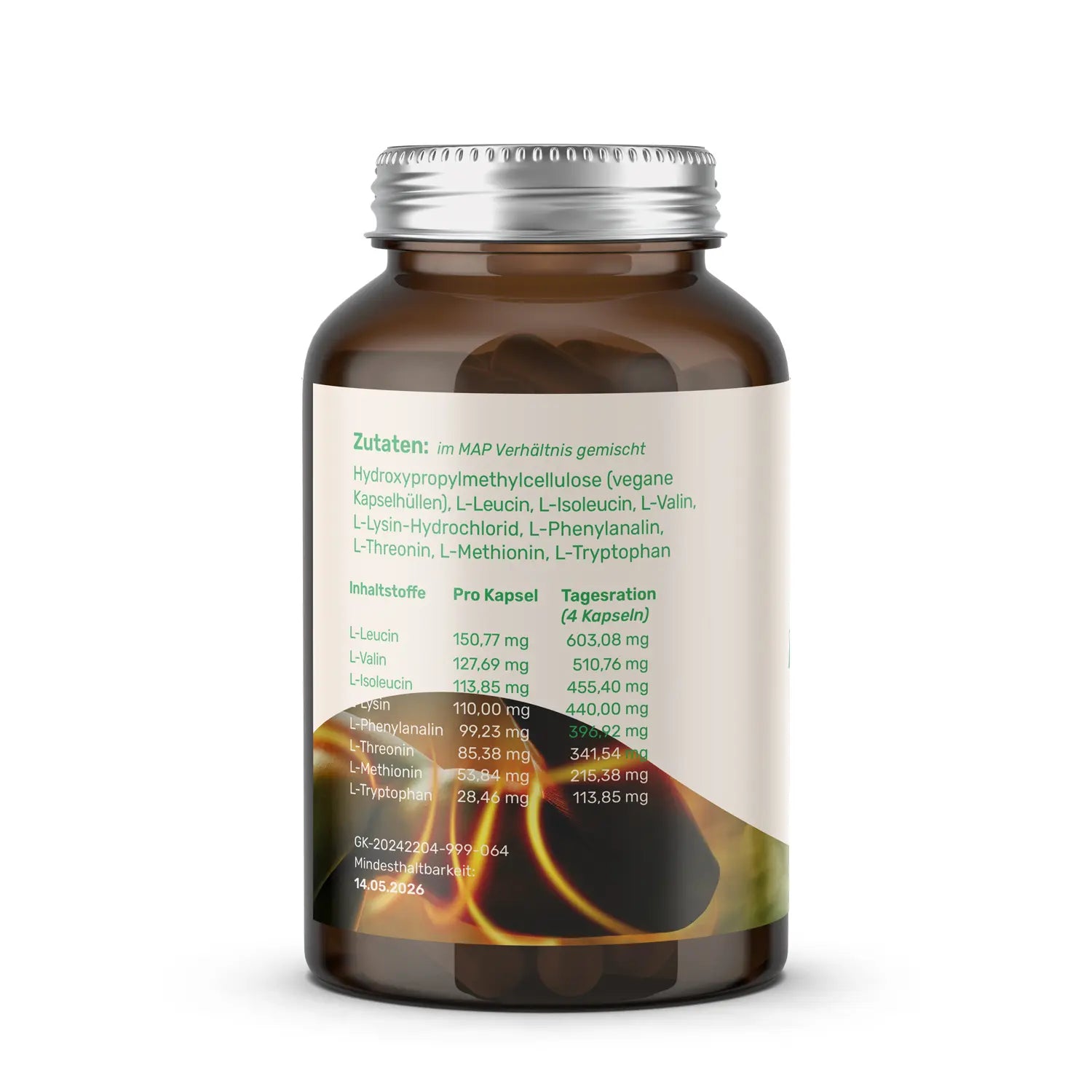 Unser EAA-Komplex Zellenaufbau versorgt dich mit allen essentiellen Aminosäuren für Muskelaufbau, Regeneration und mentale Leistung. Perfekt vor, während oder nach dem Training.